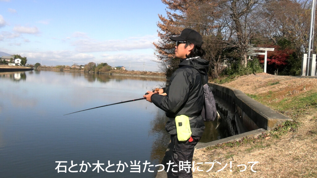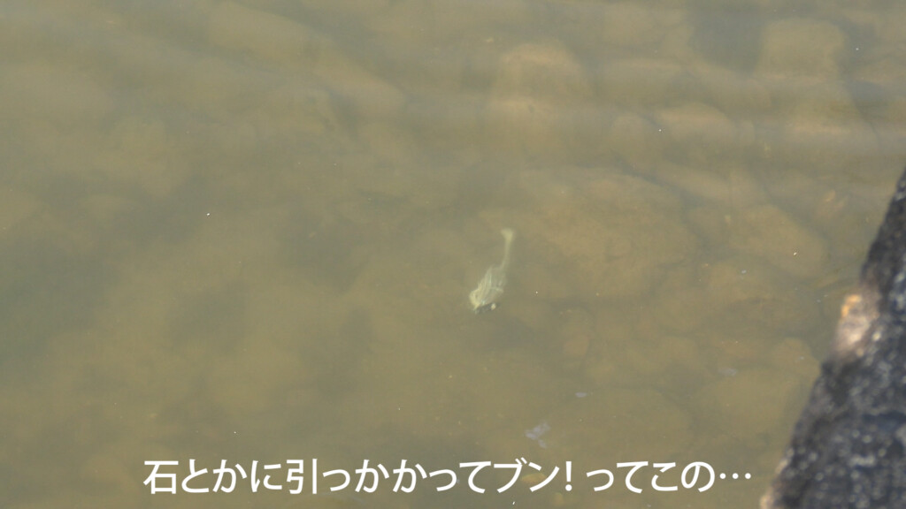水中の季節感や天候にもよるが、中層や底付近をブルブルさせて泳がせるのではなく、ほぼほぼ底の石や木に当てて使うのがミハラ的な使用法。