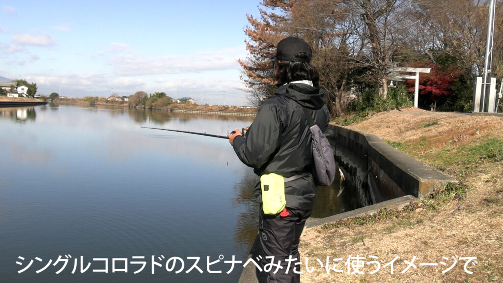 一般的な使い方は、シンコロのスピナベイメージ。スローに巻いて何かに当ててブンブンさせる。