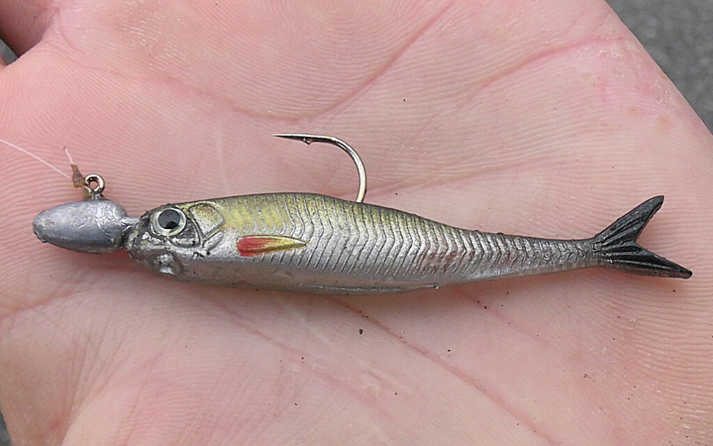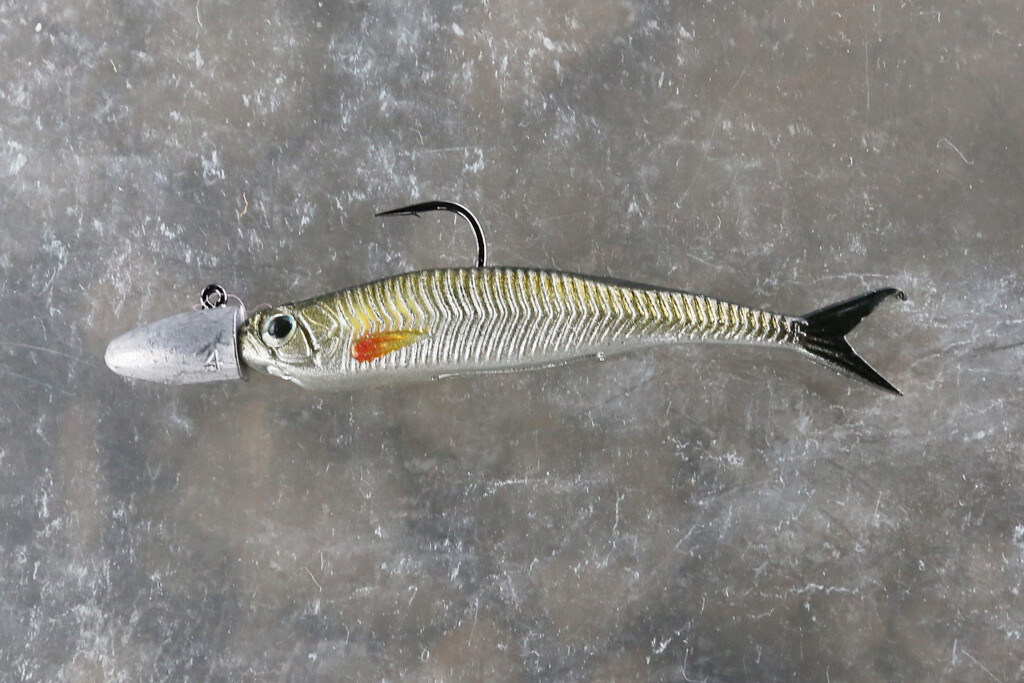 ダート系ジグヘッドとフィッシュフライの相性がよいのか、コレだけで機敏に素早くダートしながらリアルなフラッシングダートアクションを発生。